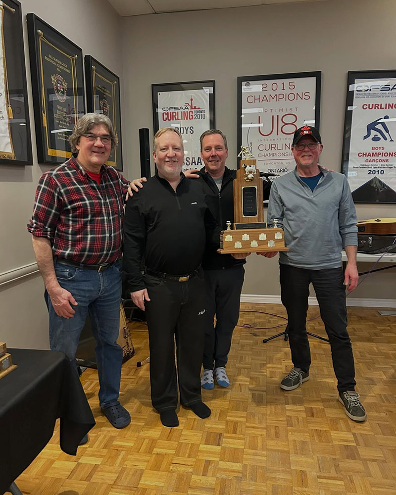 Two divisions were won by Chris Wagner, a great achievement and well done! Dave Cormier also excelled, having been on all three semi-final A teams. And congrats to Ross Cotten for earning his 50th plate on all the club trophies, more than any other club member (Dave Cormier is not far behind at 43). Ross has now won 10 Club Championships over the past 20 years, Dave has 9, Don has 8 and Graham has 4. An exceptional accomplishment for this stellar team!